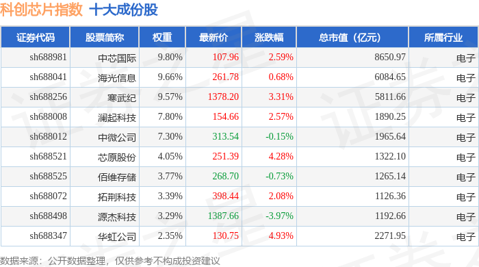 证券之星消息,4月20日,科创芯片(000685)指数报收于306994.0点,涨160.0%,成交994.18亿元,换手率282.0%。当日该指数成份股中,上涨的有28家,沪硅产业以14.73%的涨幅领涨,下跌的有22家,颀中科技以5.41%的跌幅领跌。
