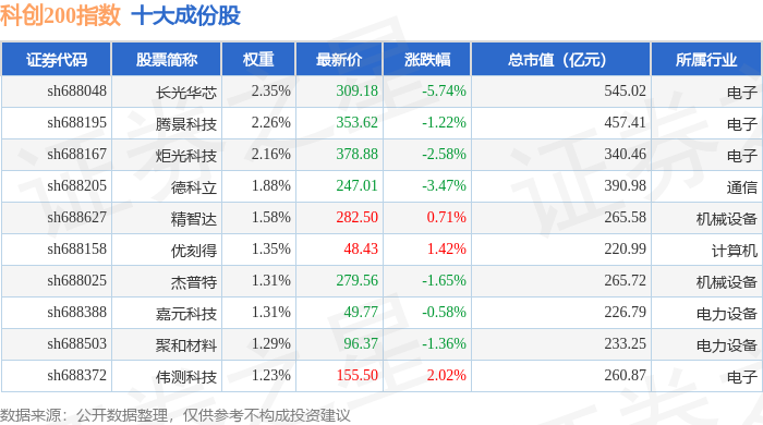证券之星消息,4月20日,科创200(000699)指数报收于160189.0点,跌12.0%,成交769.92亿元,换手率284.0%。当日该指数成份股中,上涨的有109家,高华科技以10.29%的涨幅领涨,下跌的有86家,晶丰明源以9.0%的跌幅领跌。
