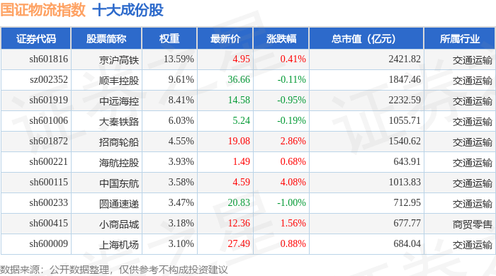 国证物流(399353)指数十大成份股详情如下:
