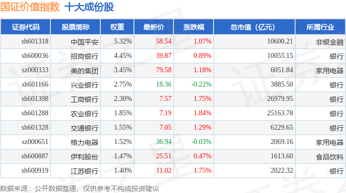 国证价值(399371)指数十大成份股详情如下: