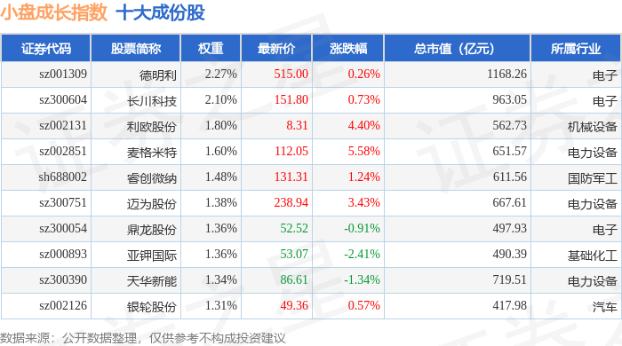 小盘成长(399376)指数十大成份股详情如下: