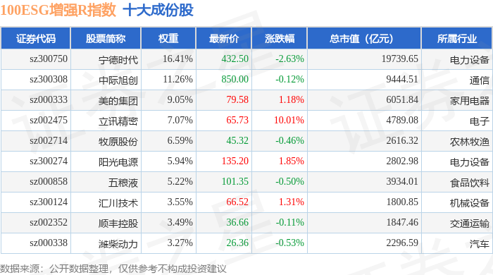 证券之星消息,4月20日,100ESG增强R(470033)指数报收于187779.0点,涨80.0%,成交1744.68亿元,换手率147.0%。当日该指数成份股中,上涨的有21家,立讯精密以10.01%的涨幅领涨,下跌的有18家,新和成以5.22%的跌幅领跌。