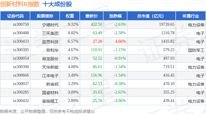 创新材料R(470039)指数十大成份股详情如下: