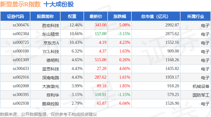 新型显示R(470048)指数十大成份股详情如下: