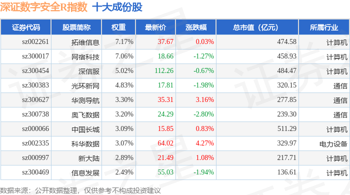 深证数字安全R(470052)指数十大成份股详情如下:
