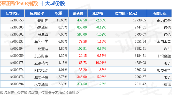 深证民企50R(470057)指数十大成份股详情如下: