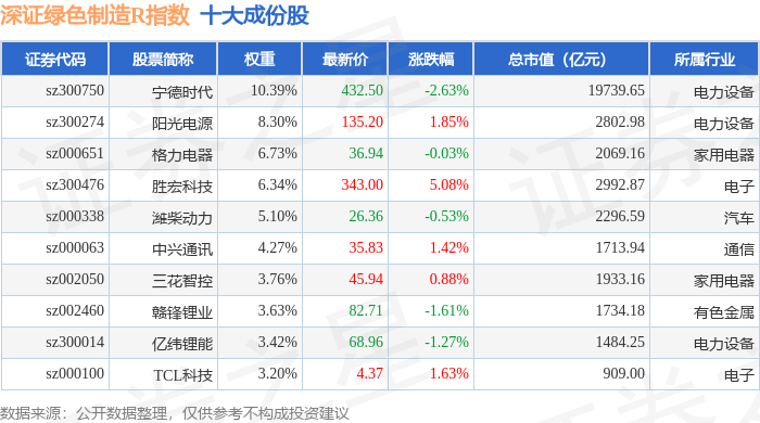 深证绿色制造R(470069)指数十大成份股详情如下: