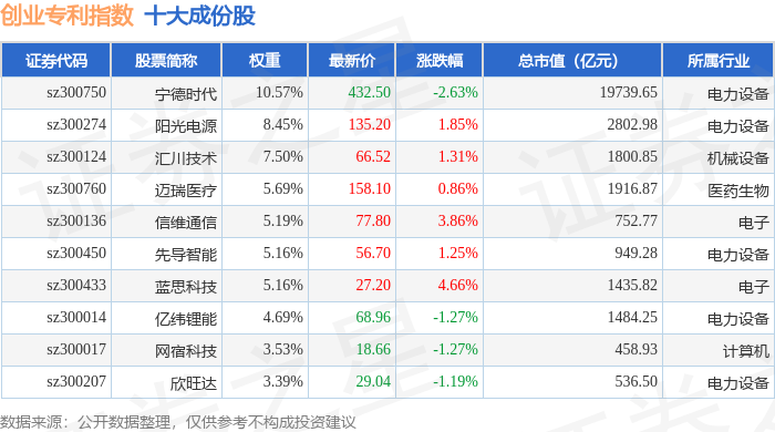 创业专利(970068)指数十大成份股详情如下: