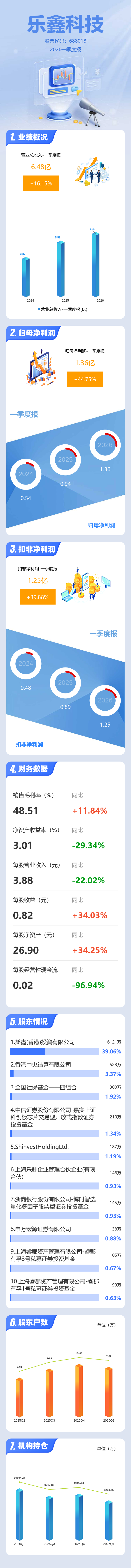 证券之星消息,乐鑫科技2026年一季报显示,一季度公司主营收入6.48亿元,同比上升16.16%;归母净利润1.36亿元,同比上升44.76%;扣非净利润1.25亿元,同比上升39.88%;负债率10.2%,投资收益799.88万元,财务费用-73.67万元,毛利率48.51%。