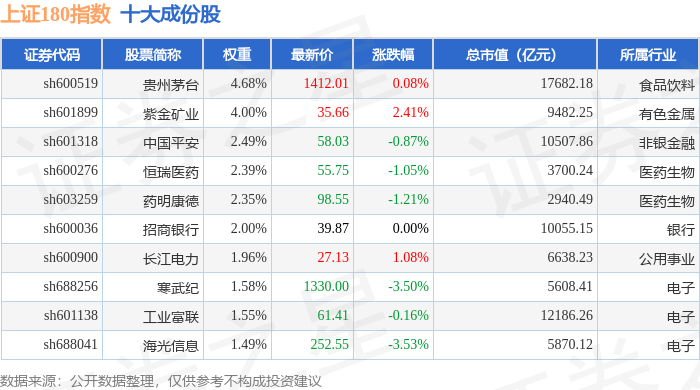 资金流向方面,上证180(000010)指数成份股当日主力资金净流出合计39.05亿元,游资资金净流入合计2.92亿元,散户资金净流入合计36.13亿元。成份股资金流向详情见下表: