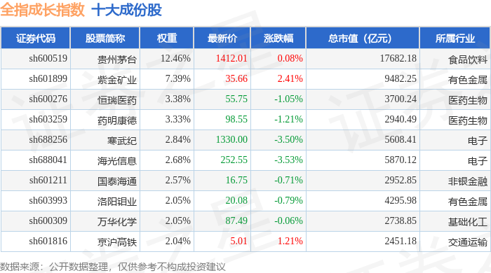 全指成长(000057)指数十大成份股详情如下: