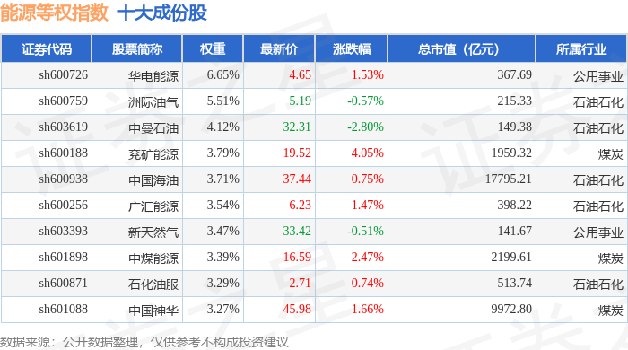 能源等权(000070)指数十大成份股详情如下: