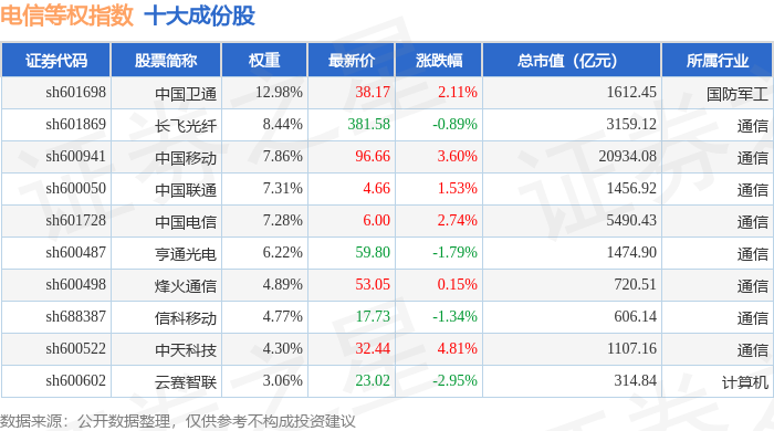 证券之星消息,4月21日,电信等权(000078)指数报收于4274.11点,涨0.78%,成交704.9亿元,换手率1.2%。当日该指数成份股中,上涨的有14家,仕佳光子以8.78%的涨幅领涨,下跌的有17家,国盾量子以4.02%的跌幅领跌。