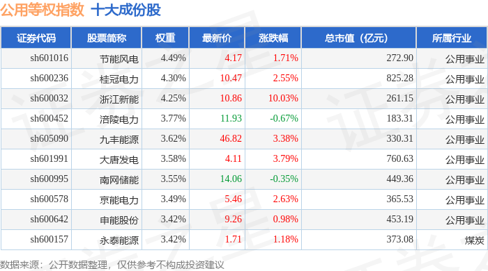 公用等权(000079)指数十大成份股详情如下: