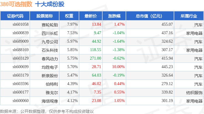 380可选(000107)指数十大成份股详情如下: