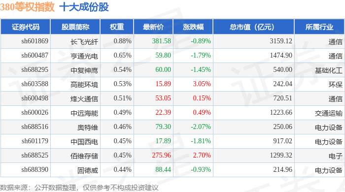 证券之星消息,4月21日,380等权(000115)指数报收于9305.24点,涨0.1%,成交2426.79亿元,换手率1.57%。当日该指数成份股中,上涨的有181家,金宏气体以12.2%的涨幅领涨,下跌的有192家,江瀚新材以8.72%的跌幅领跌。
