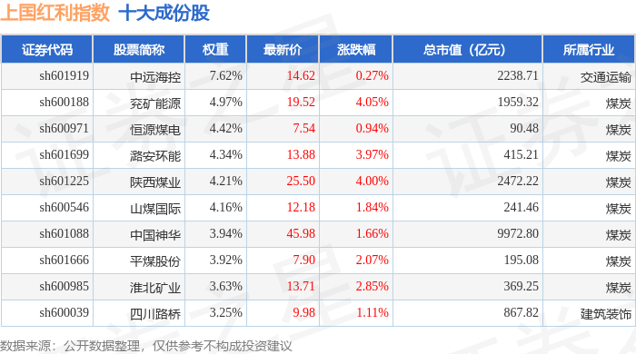 上国红利(000151)指数十大成份股详情如下:
