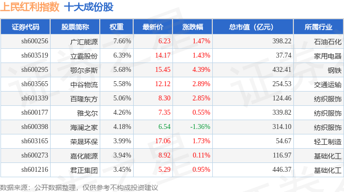 证券之星消息,4月21日,上民红利(000153)指数报收于3406.69点,涨1.45%,成交71.2亿元,换手率1.38%。当日该指数成份股中,上涨的有23家,阳光照明以10.0%的涨幅领涨,下跌的有7家,旗滨集团以1.48%的跌幅领跌。