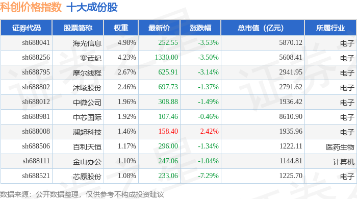 证券之星消息,4月21日,科创价格(000681)指数报收于1778.25点,跌0.81%,成交2823.48亿元,换手率2.27%。当日该指数成份股中,上涨的有208家,方邦股份以20.0%的涨幅领涨,下跌的有367家,ST臻镭以15.64%的跌幅领跌。