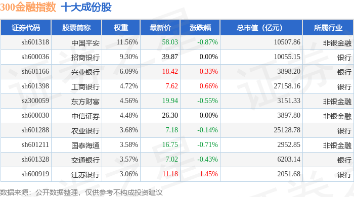 300金融(000914)指数十大成份股详情如下: