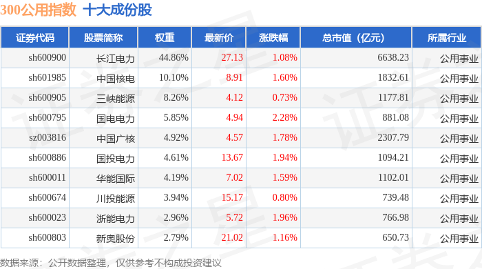 证券之星消息,4月21日,300公用(000917)指数报收于2504.11点,涨1.32%,成交113.11亿元,换手率0.73%。当日该指数成份股中,上涨的有13家,国电电力以2.28%的涨幅领涨。