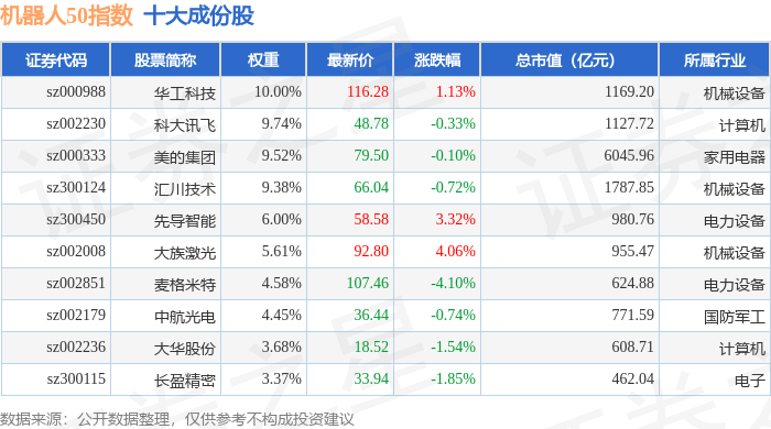 机器人50(399283)指数十大成份股详情如下: