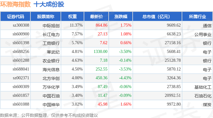证券之星消息,4月21日,环渤海(399357)指数报收于3777.08点,涨0.12%,成交880.01亿元,换手率0.28%。当日该指数成份股中,上涨的有21家,恒力石化以4.75%的涨幅领涨,下跌的有16家,北方华创以4.43%的跌幅领跌。