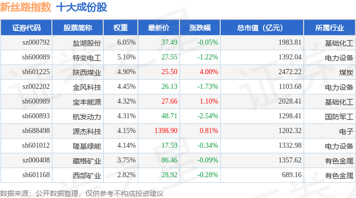 新丝路(399429)指数十大成份股详情如下: