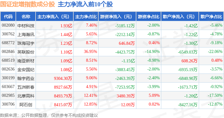 资金流向方面,国证定增(399428)指数成份股当日主力资金净流出合计31.92亿元,游资资金净流入合计10.69亿元,散户资金净流入合计21.24亿元。成份股资金流向详情见下表: