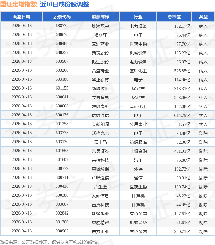 近10日内国证定增(399428)指数成份股做了调整,新纳入了12只股票,剔除了12只股票。