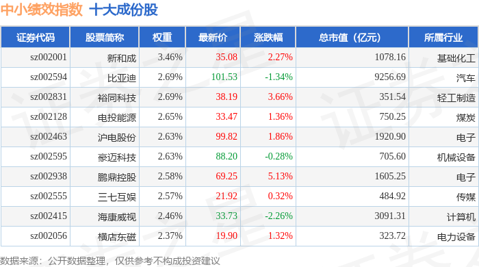 中小绩效(399658)指数十大成份股详情如下:
