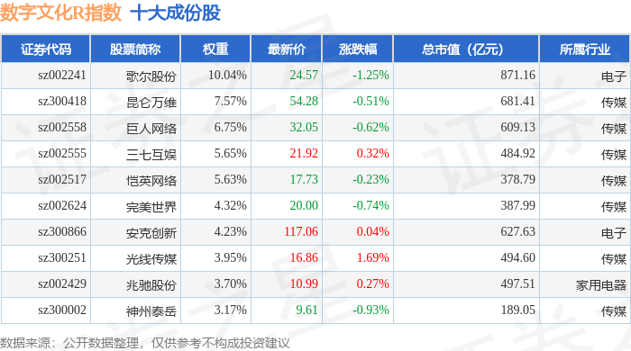 数字文化R(470047)指数十大成份股详情如下: