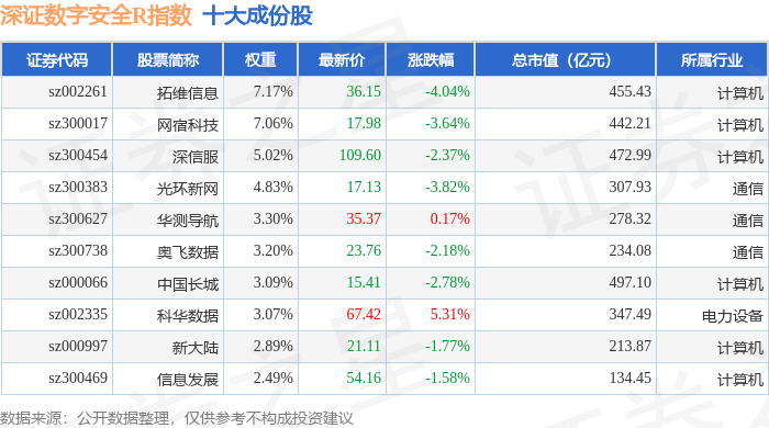深证数字安全R(470052)指数十大成份股详情如下: