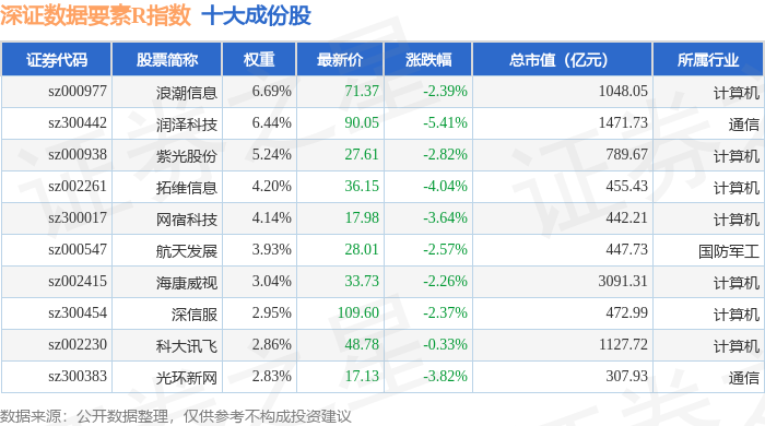 证券之星消息,4月21日,深证数据要素R(470053)指数报收于4386.68点,跌2.24%,成交641.41亿元,换手率3.34%。当日该指数成份股中,上涨的有5家,科华数据以5.31%的涨幅领涨,下跌的有45家,锐捷网络以6.57%的跌幅领跌。