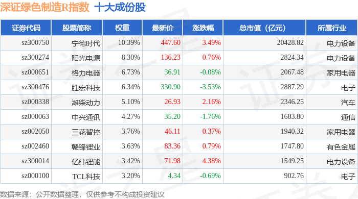深证绿色制造R(470069)指数十大成份股详情如下: