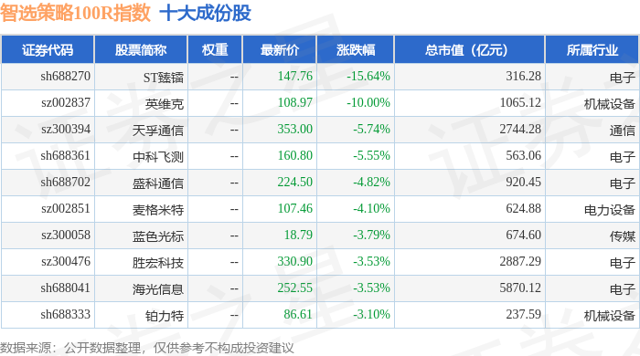 智选策略100R(489015)指数十大成份股详情如下: