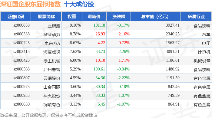深证国企股东回报(970064)指数十大成份股详情如下: