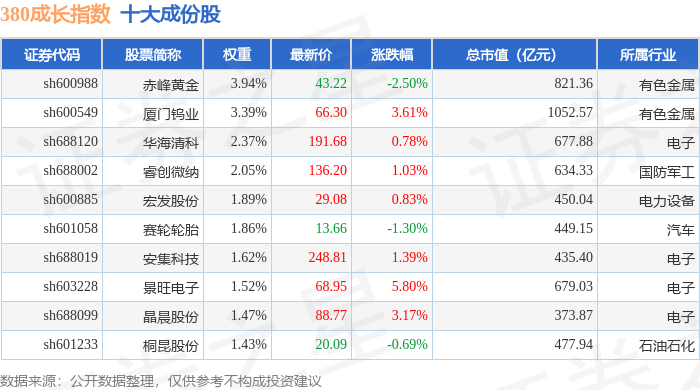 380成长(000117)指数十大成份股详情如下: