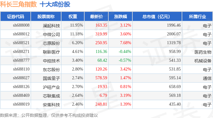 证券之星消息,4月22日,科长三角(000695)指数报收于1125.87点,涨2.17%,成交559.32亿元,换手率2.07%。当日该指数成份股中,上涨的有38家,芯原股份以7.68%的涨幅领涨,下跌的有12家,合合信息以2.43%的跌幅领跌。