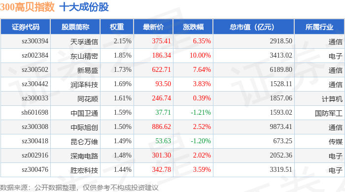 300高贝(000828)指数十大成份股详情如下: