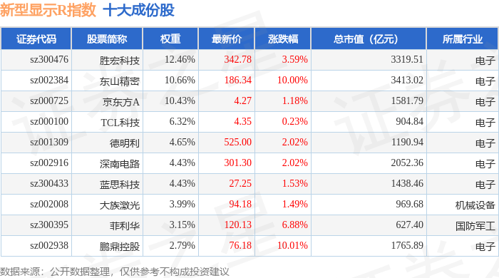 新型显示R(470048)指数十大成份股详情如下: