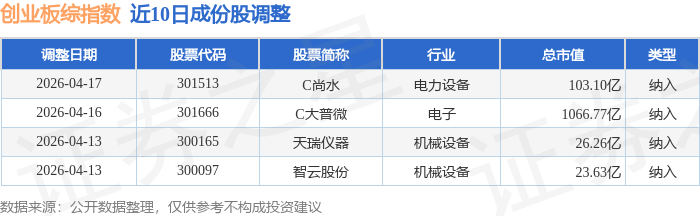 近10日内创业板综(399102)指数成份股做了调整,新纳入了4只股票。