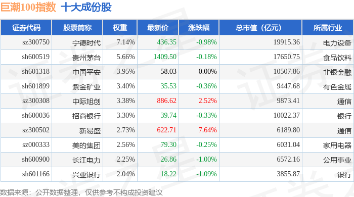 证券之星消息,4月22日,巨潮100(399313)指数报收于5473.76点,涨0.42%,成交3025.27亿元,换手率0.38%。当日该指数成份股中,上涨的有39家,工业富联以8.92%的涨幅领涨,下跌的有56家,中国联通以3.43%的跌幅领跌。