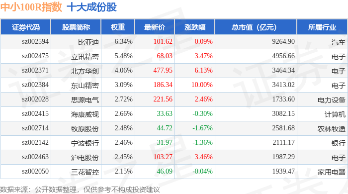 证券之星消息,4月22日,中小100R(399333)指数报收于11317.97点,涨1.52%,成交1846.91亿元,换手率1.74%。当日该指数成份股中,上涨的有58家,鹏鼎控股以10.01%的涨幅领涨,下跌的有41家,海大集团以2.83%的跌幅领跌。