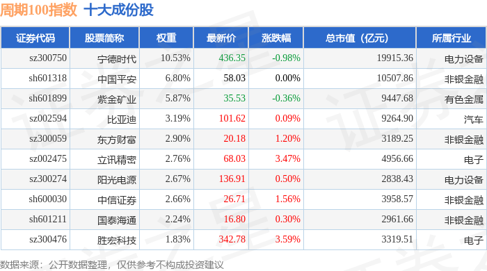 证券之星消息,4月22日,周期100(399402)指数报收于3950.93点,涨0.44%,成交2421.01亿元,换手率0.86%。当日该指数成份股中,上涨的有50家,三安光电以10.01%的涨幅领涨,下跌的有47家,招商轮船以5.92%的跌幅领跌。