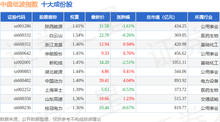 中盘低波(399406)指数十大成份股详情如下: