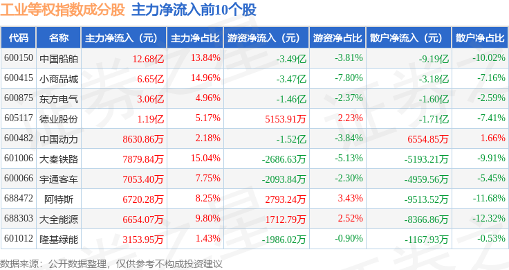 资金流向方面,工业等权(000072)指数成份股当日主力资金净流出合计3135.55万元,游资资金净流出合计1.37亿元,散户资金净流入合计1.68亿元。成份股资金流向详情见下表:
