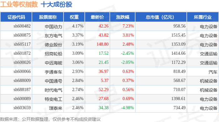 工业等权(000072)指数十大成份股详情如下: