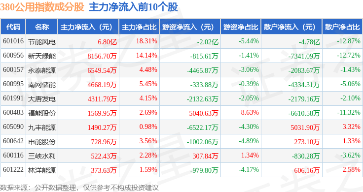 资金流向方面,380公用(000113)指数成份股当日主力资金净流入合计7.85亿元,游资资金净流出合计2.94亿元,散户资金净流出合计4.91亿元。成份股资金流向详情见下表: