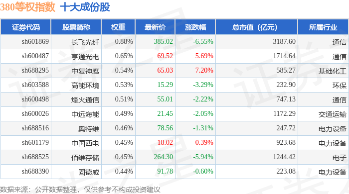380等权(000115)指数十大成份股详情如下: